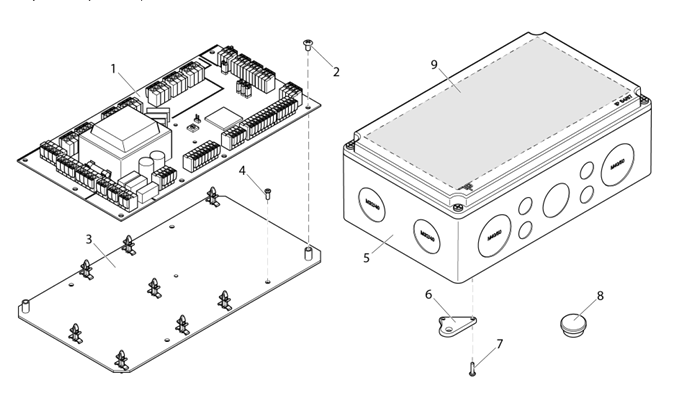 Expansion card for Mega, possibility to control extra distribution circuits, pool, cooling, power limitation, tap water control and external brine circulation pump (0-10 V).